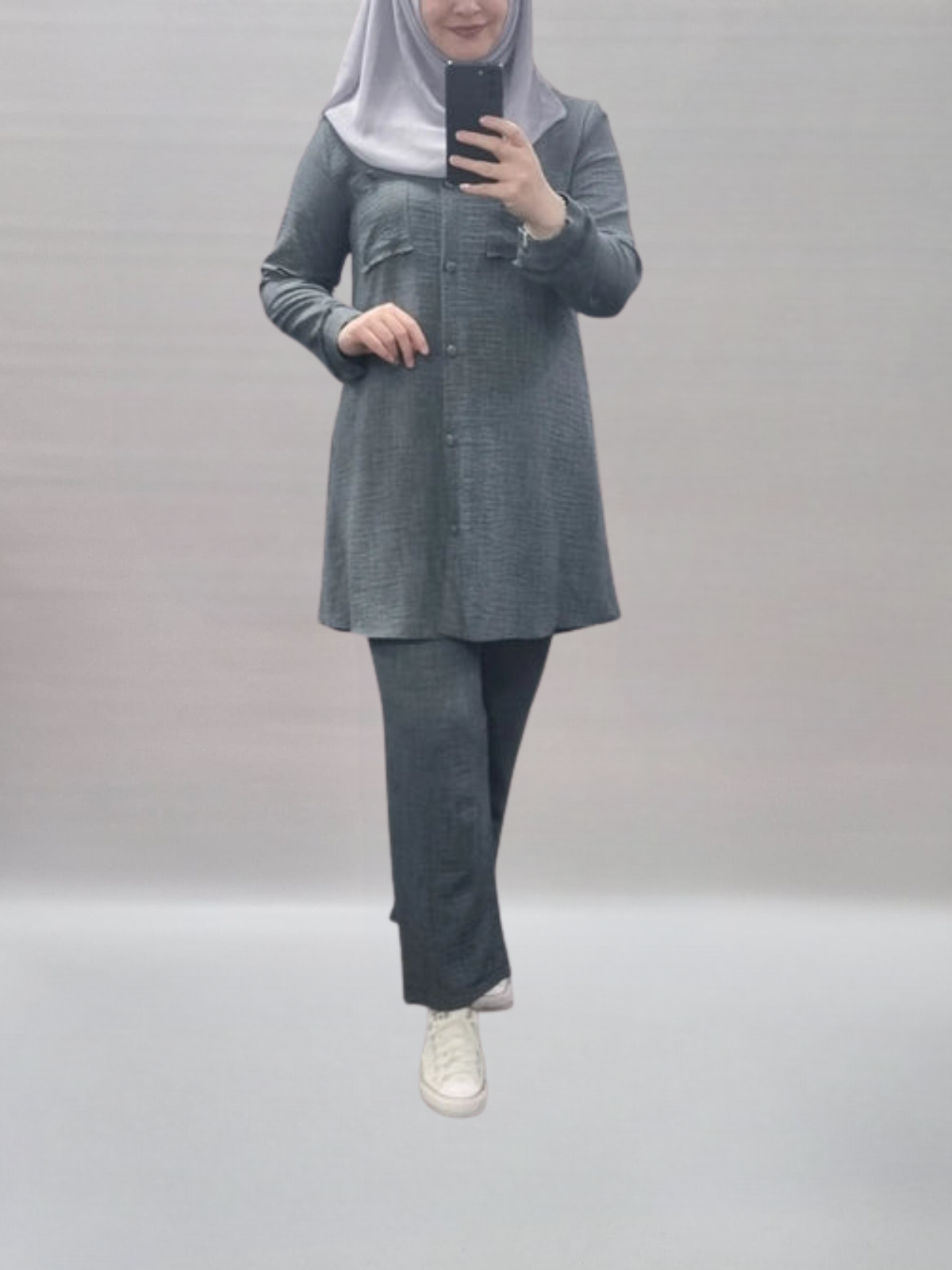 Dieser Zweiteiler überzeugt durch sein klares Design und die feine Knopfleiste als stilvolles Detail. Die lockere Tunika in Kombination mit der passenden Hose sorgt für einen zeitlosen Look mit maximalem Komfort.