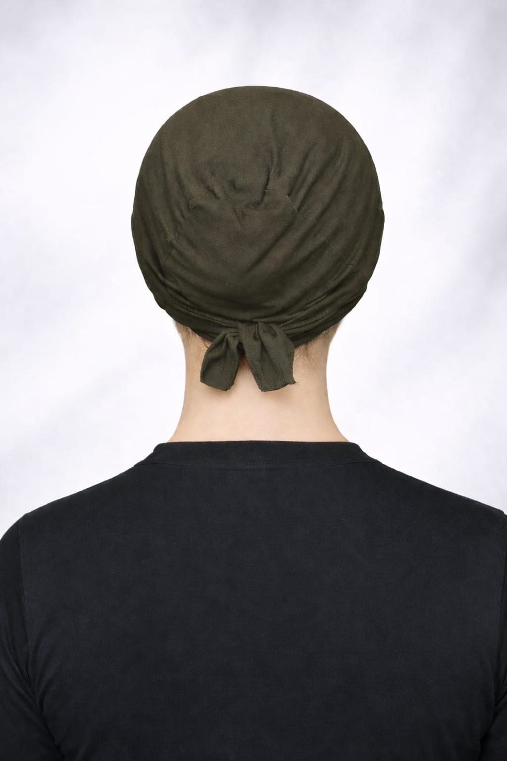 Viskose Bonnet – elastisches Unterkopftuch mit Bindeband khaki