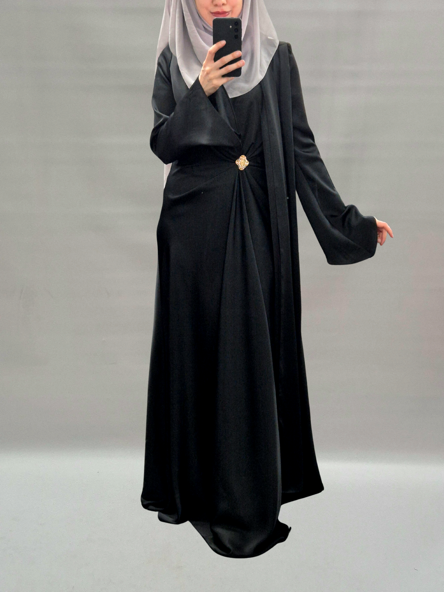 - Ein seitlich angesetzter,drapierter Stoffüberwurf